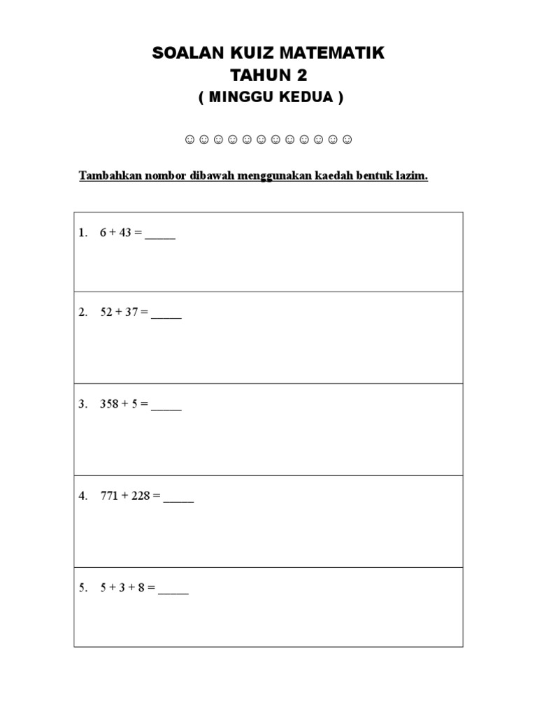 Soalan Tahun 2 Matematik / Cari jawapan bagi setiap masalah yang diberi 1 bundarkan 853 kepada ratus yang terdekat.. Soalan ujian matematik, soalan ujian matematik tahun 2,. Latihan soalan online matematik tahun 2 (4). Soalan akhir tahun matematik tahun 2. Aminah dapat menjawab 8 soalan dengan betul. Penilaian sumatif matematik tahun 2.